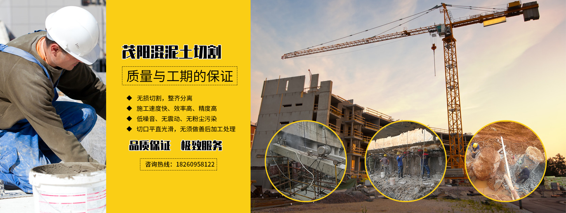 廣西茂陽建筑工程有限公司成立于2014年,發(fā)展至今現(xiàn)有員工153人,是由一批專業(yè)高效的技術(shù)團(tuán)隊(duì)組成的工程公司,擁有注冊(cè)資本1000萬元,年施工能力1500萬元以上。目前有20臺(tái)繩鋸切割機(jī),3臺(tái)馬路碟鋸機(jī),8臺(tái)水鉆機(jī),3臺(tái)風(fēng)炮機(jī),2臺(tái)挖機(jī),23臺(tái)鉆孔機(jī)。茂陽主要服務(wù)項(xiàng)目有鋼筋混泥土切割,水下切割、加固、植筋、鉆孔、補(bǔ)強(qiáng)、切割加固、房屋切割加固/破碎拆除、橋梁切割加固/破碎拆除、建筑切割加固/破碎拆除等特種工程......